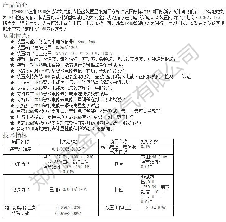 JZ-9003A三相IR46多芯智能电能表检验装置